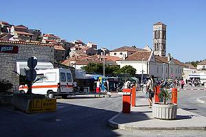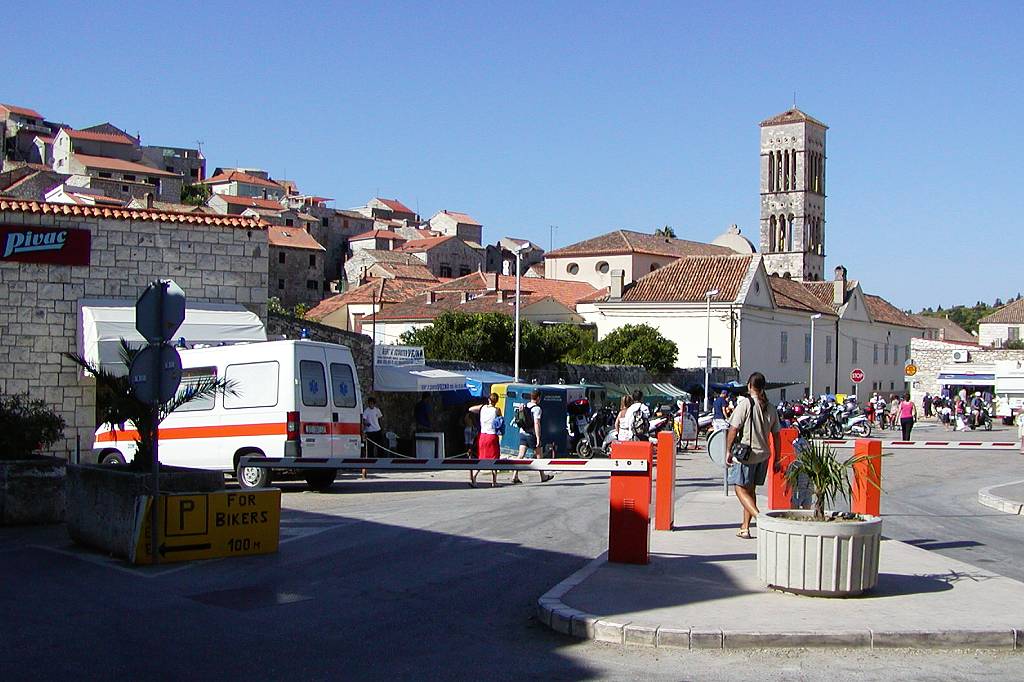 Vjezd do středu města je zakázán. Zaparkovat lze na velkém parkovišti pár minut od náměstí.
