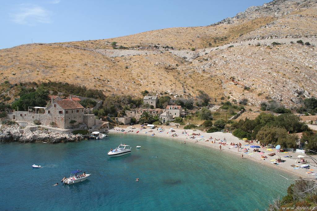 Ozdobou zátoky je krásná, poměrně dlouhá oblázková pláž. V létě bývá dost plná, ale nedá de to srovnávat s plážemi ve městě Hvaru. Z jazyků je slyšet hlavně italština. Restaurace umístěná v jednom ze starých domků těsně u pláže nabízí občestvení a příjemné posezení ve stínu.