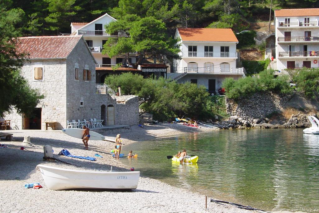 Zdejší severní pobřeží je skalnaté, skály většinou spadají příkře do moře, místy však jsou malé oblázkové pláže, často obtížněji přístupné. Moře je tu bohaté rybami, na rybolov sem jezdí i rybáři z podbiokovských osad. Jižní pobřeží je poněkud příhodnější.
