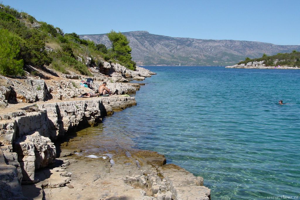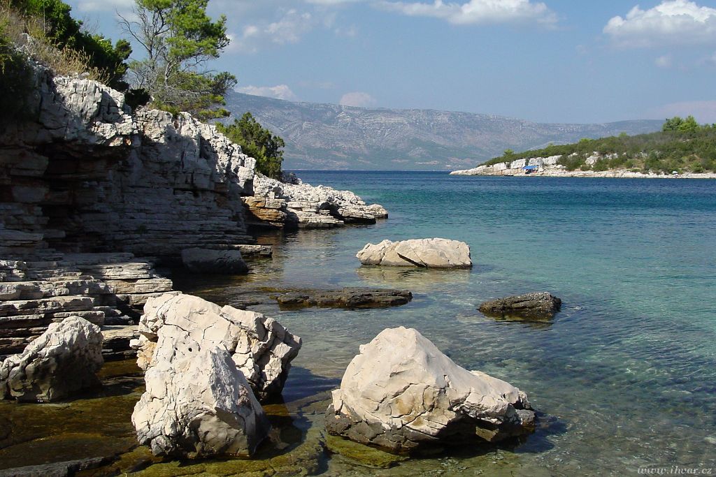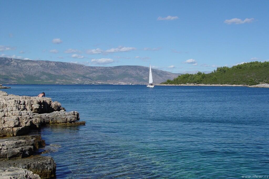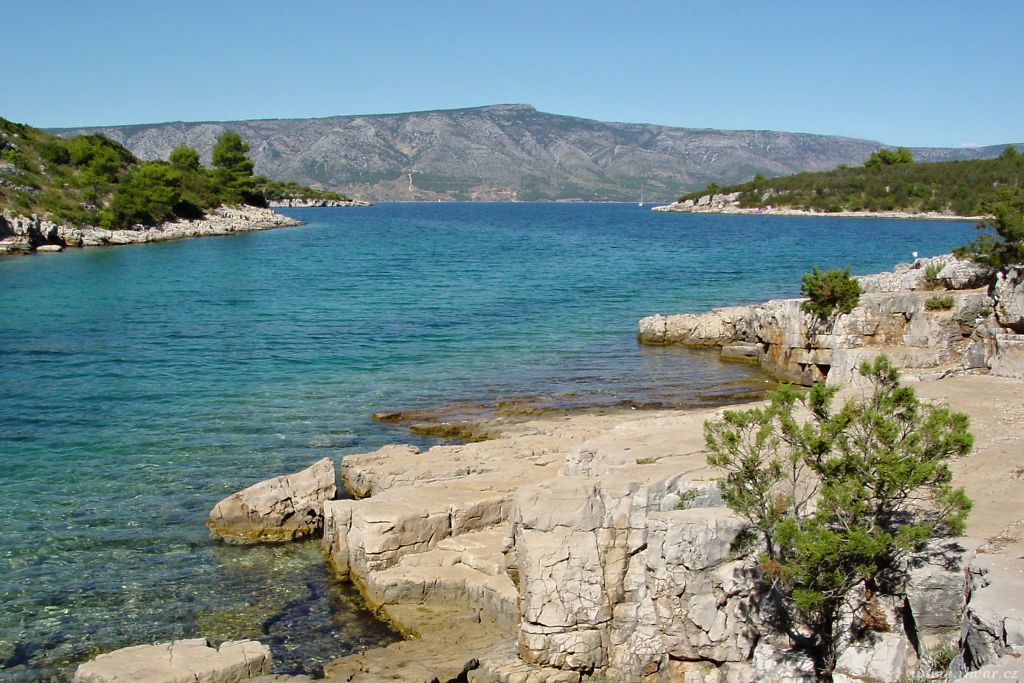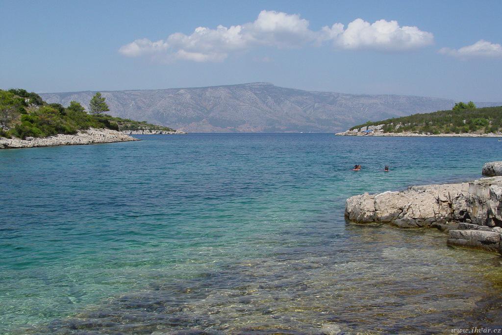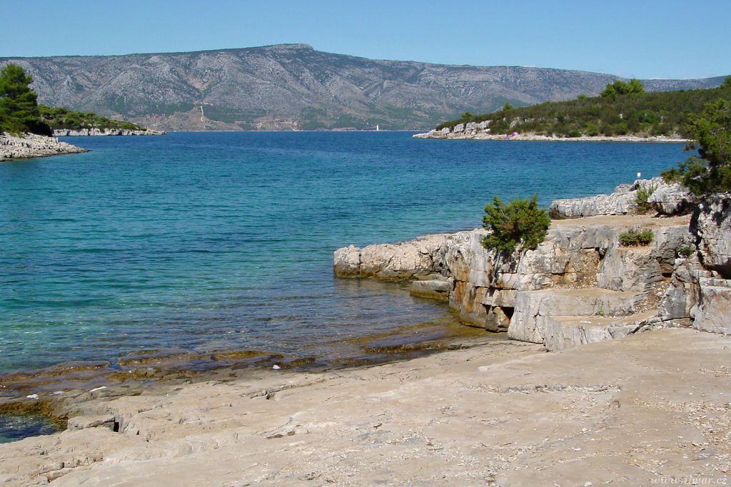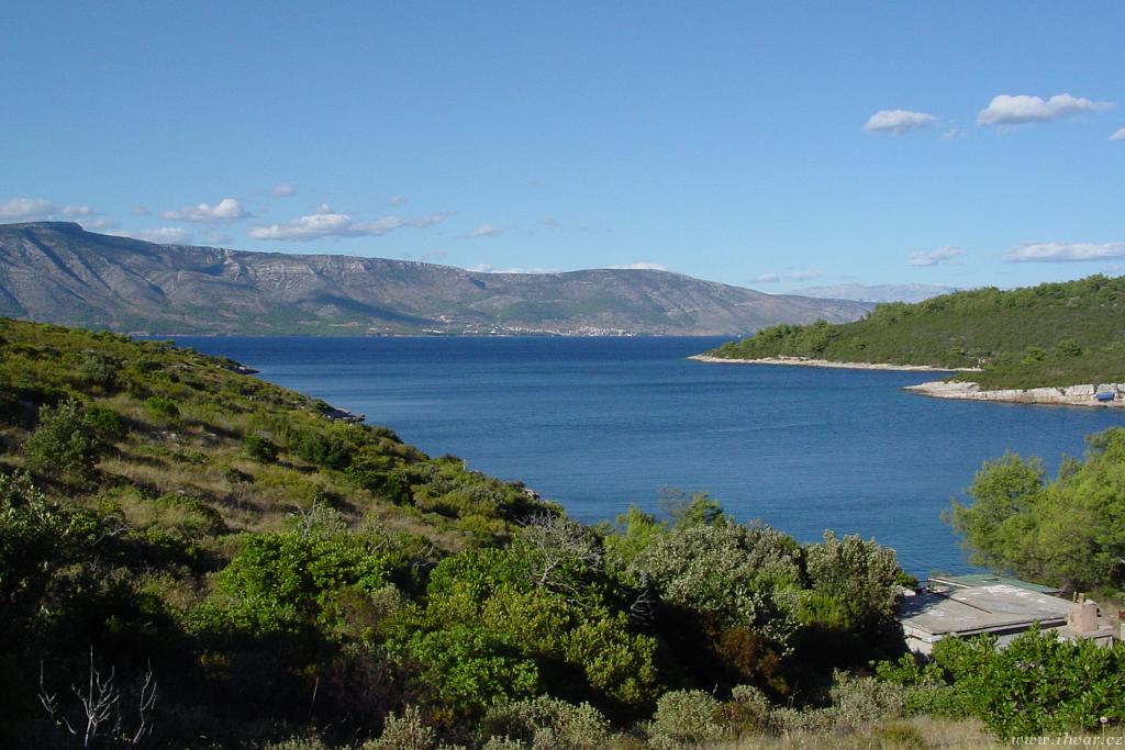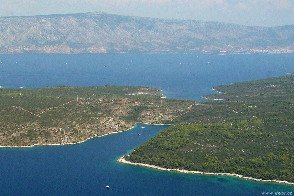 Neméně krásný je i výhled, který se ze zátoky otevírá k severu. Horský masív protilehlého ostrova Brače s jeho nejvyšším vrcholem (Vidova gora, 780 m) se prudce zvedá přímo od pobřeží. Lze rozeznat i velké letovisko Bol.