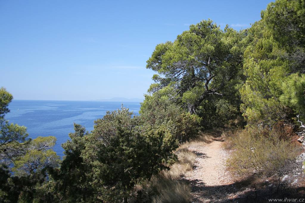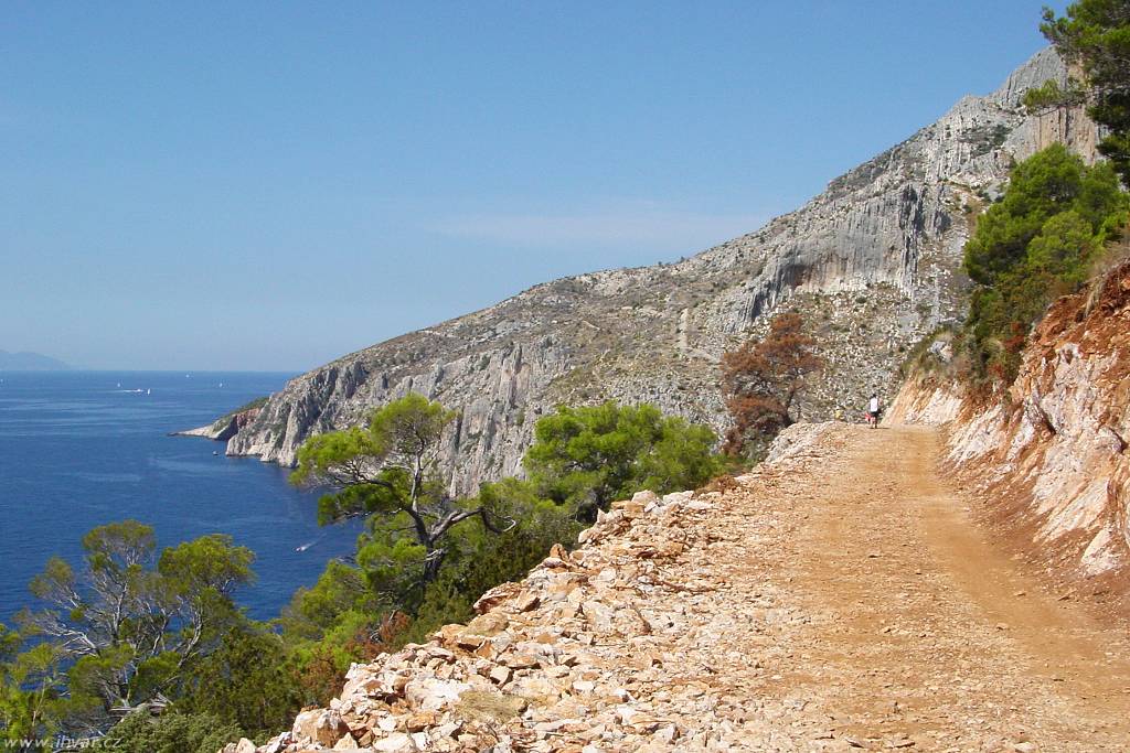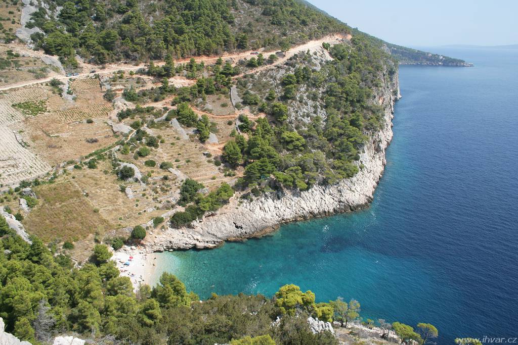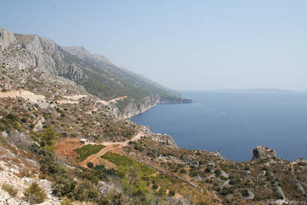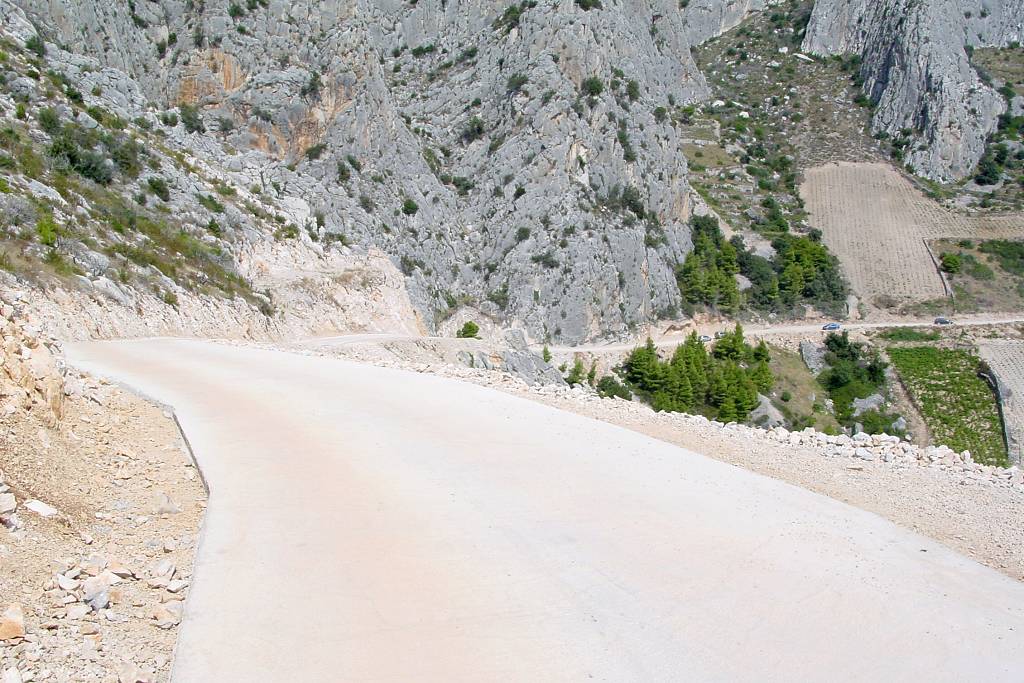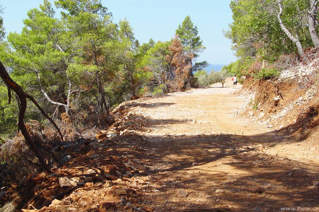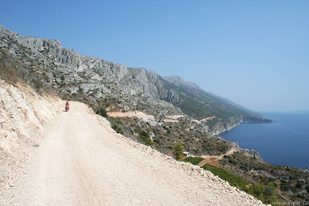 Na rozdíl od ostatních makadamových cest na ostrově je dobře uválcovaná a skutečně žádné zrádné kameny, které by mohly poškodit podvozkek auta, tu nehrozí. Zato šířka cesty je trochu problematická. Výhodu mají řidiči, kteří jedou směrem od Sv. Nedjelje. Ti mají na své straně sráz a občas nějaké rozšířené místo k vyhýbání. Hůř jsou na tom ti, kteří jedou opačným směrem, protože nahrnutá krajnice není stabilní a nikdo si netroufne zajet až na samotný okraj. Pokud jsou opatrní a ohleduplní, obejde se vzájemné vyhýbání osobních aut bez následků. Větším oříškem je setkání s nákladním autem, které tu není tak výjimečné, jak by se na pohled zdálo. Vozidla hvarských komunálních služeb a vinařského podniku Zlatan otok ji používají celkem pravidelně. Když se v létě potkalo nákladní auto plné vína s obytným vozem a navíc přímo nad zátokou Lučišće, kde všechna rozšířená místa zabírají parkující auta těch, kteří se přijeli do zátoky vykoupat, trvalo jim manévrování téměř půlhodinu.
